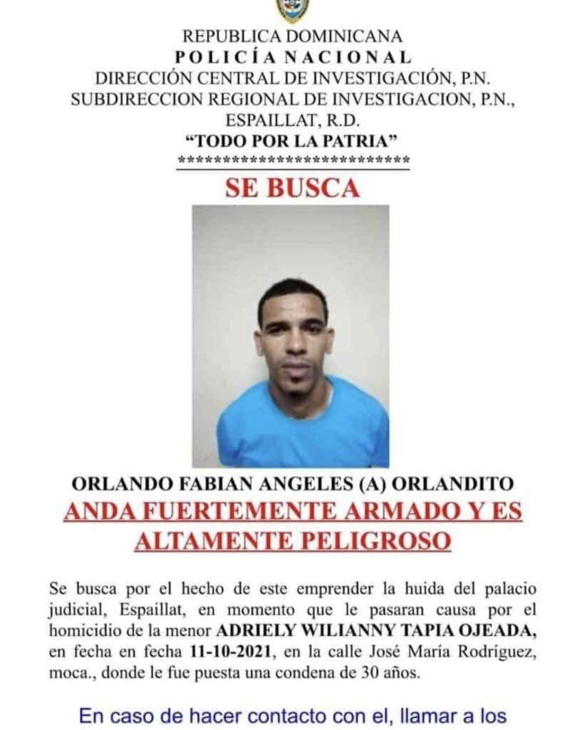 De acuerdo con las informaciones, el condenado se evadió del Palacio de Justicia de Moca la noche del lunes, minutos después de la lectura del fallo, aprovechando un descuido en el perímetro de seguridad cuando ya la audiencia había finalizado.